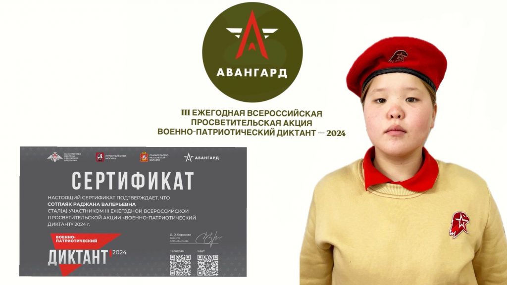 III Ежегодная всероссийская просветительская акция «Военно-патриотический диктант – 2024», организованная автономной некоммерческой организацией «Учебно-методический центр военно-патриотического воспитания молодежи «Авангард».