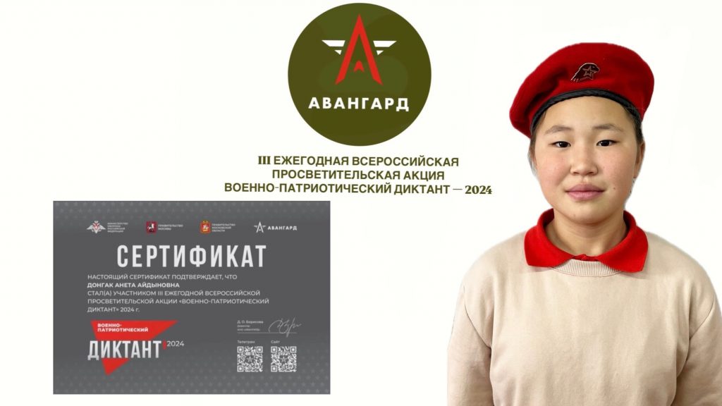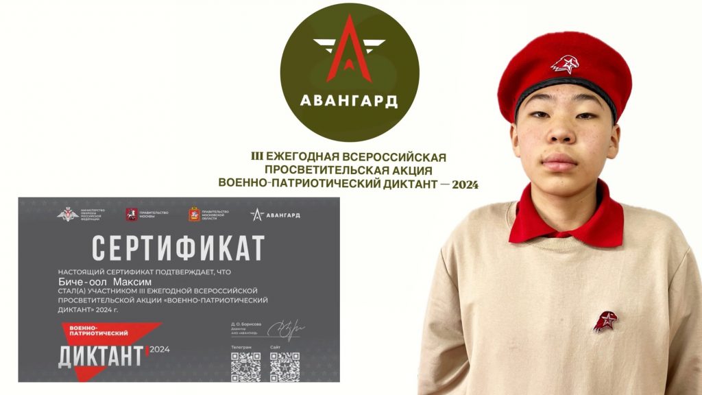 🇷🇺Наши активисты, члены движения «Юнармия», вместе с педагогом Пиче-оол А.О. приняли активное участие в этом диктанте и показали отличные результаты!
