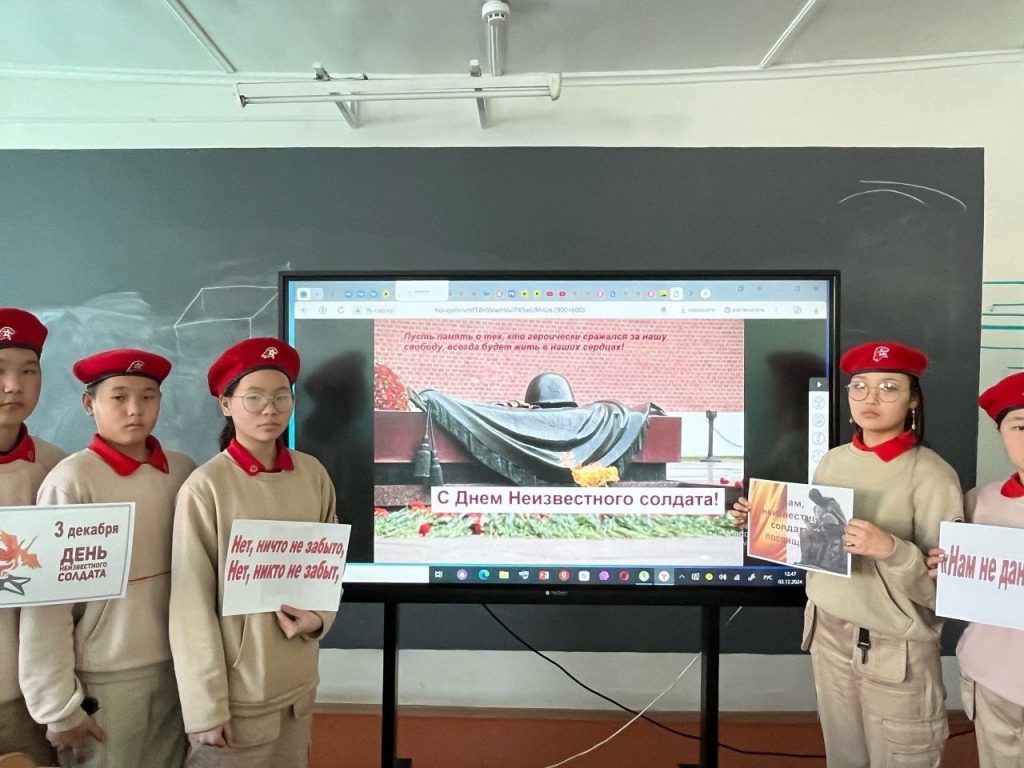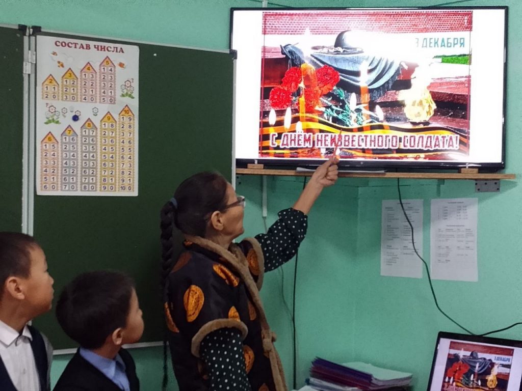 В честь этой памятной даты классные руководители Санчайбанова Мария Чаш-ооловна и Опежик Кара-Кыс Мадр-ооловна провели классные часы, в ходе которого они рассказали учащимся об истории появления Дня Неизвестного солдата и о важности сохранения исторической памяти.