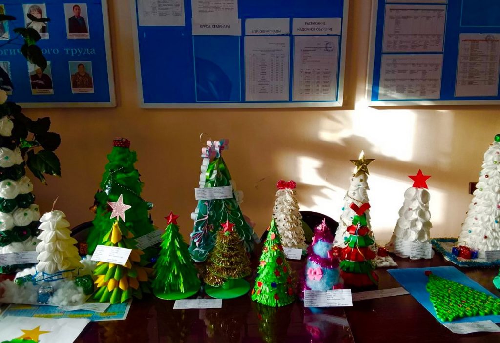 Учащиеся школы продемонстрировали свой талант и мастерство, создавая уникальные новогодние ёлочки из самых разнообразных материалов. Благодаря этой акции ребята показали, что можно украсить свой дом и школу, не нанося вред природе и не вырубая лесные деревья.