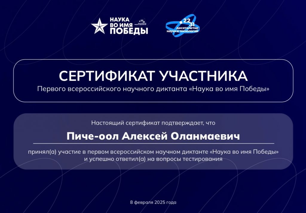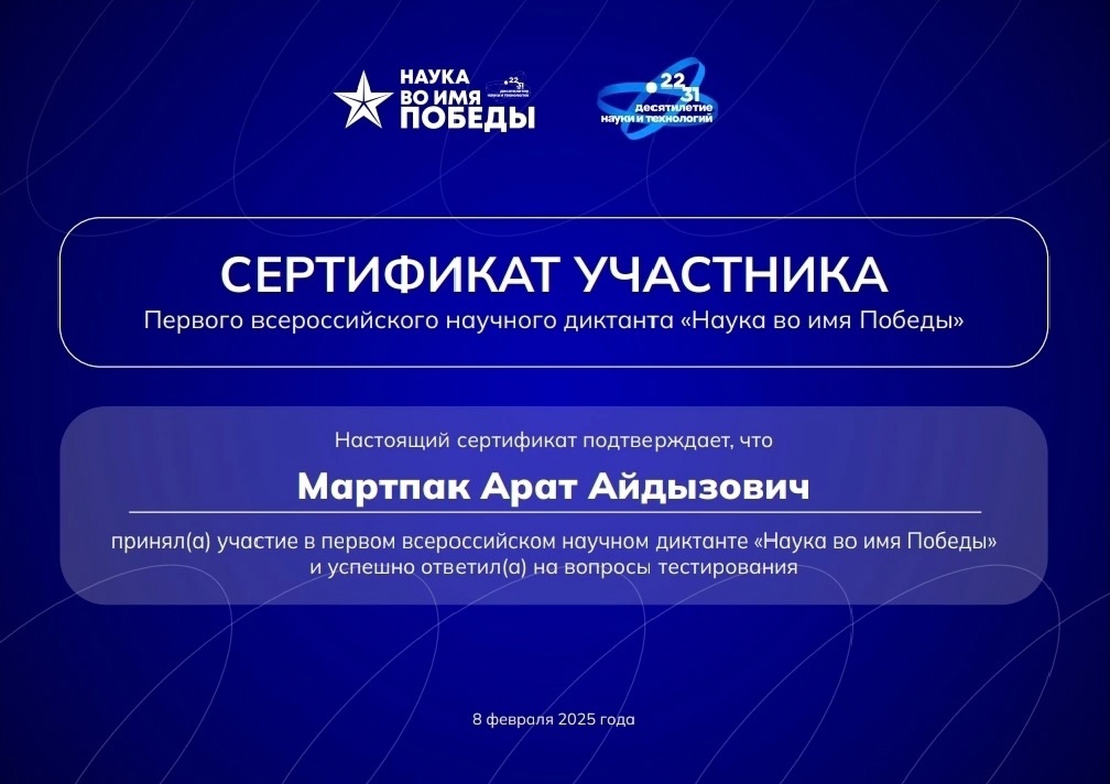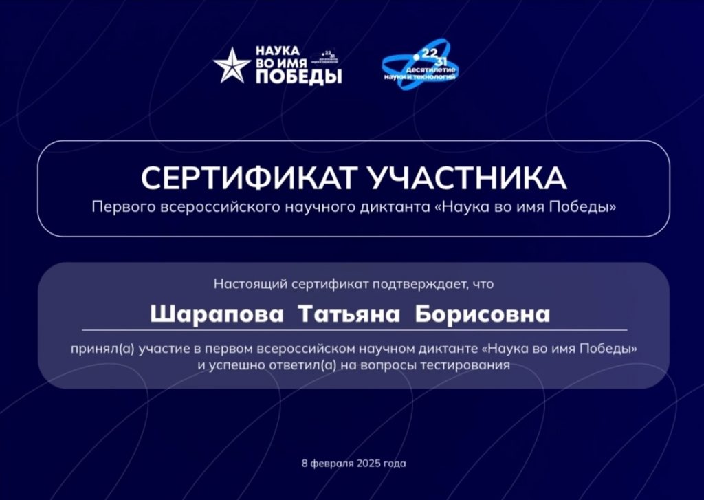 В честь Дня российской науки и 80-летия Победы в Великой Отечественной войне 8 февраля в МГУ имени М.В. Ломоносова состоялся первый всероссийский научный диктант «Наука во имя победы».