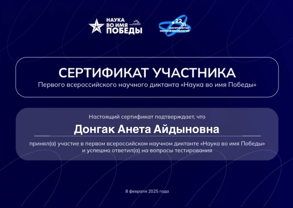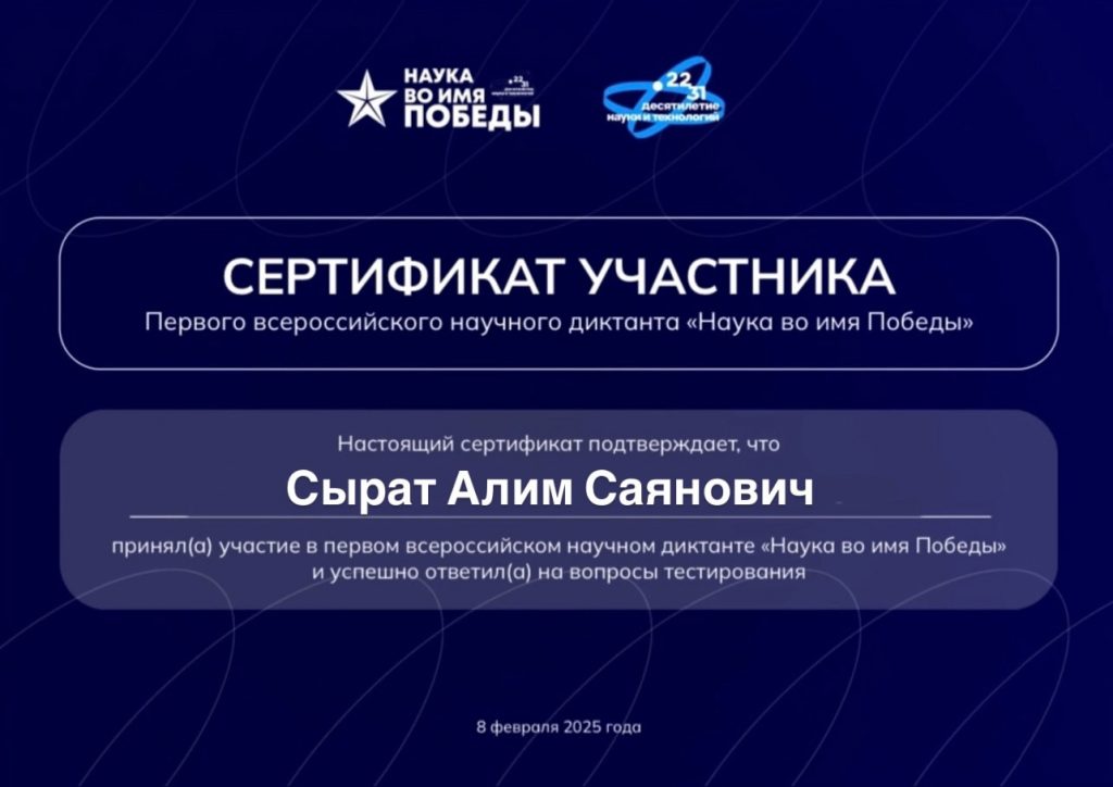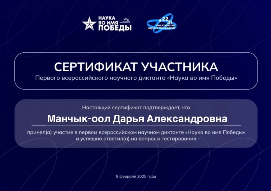 Первый всероссийский научный диктант «Наука во имя победы».