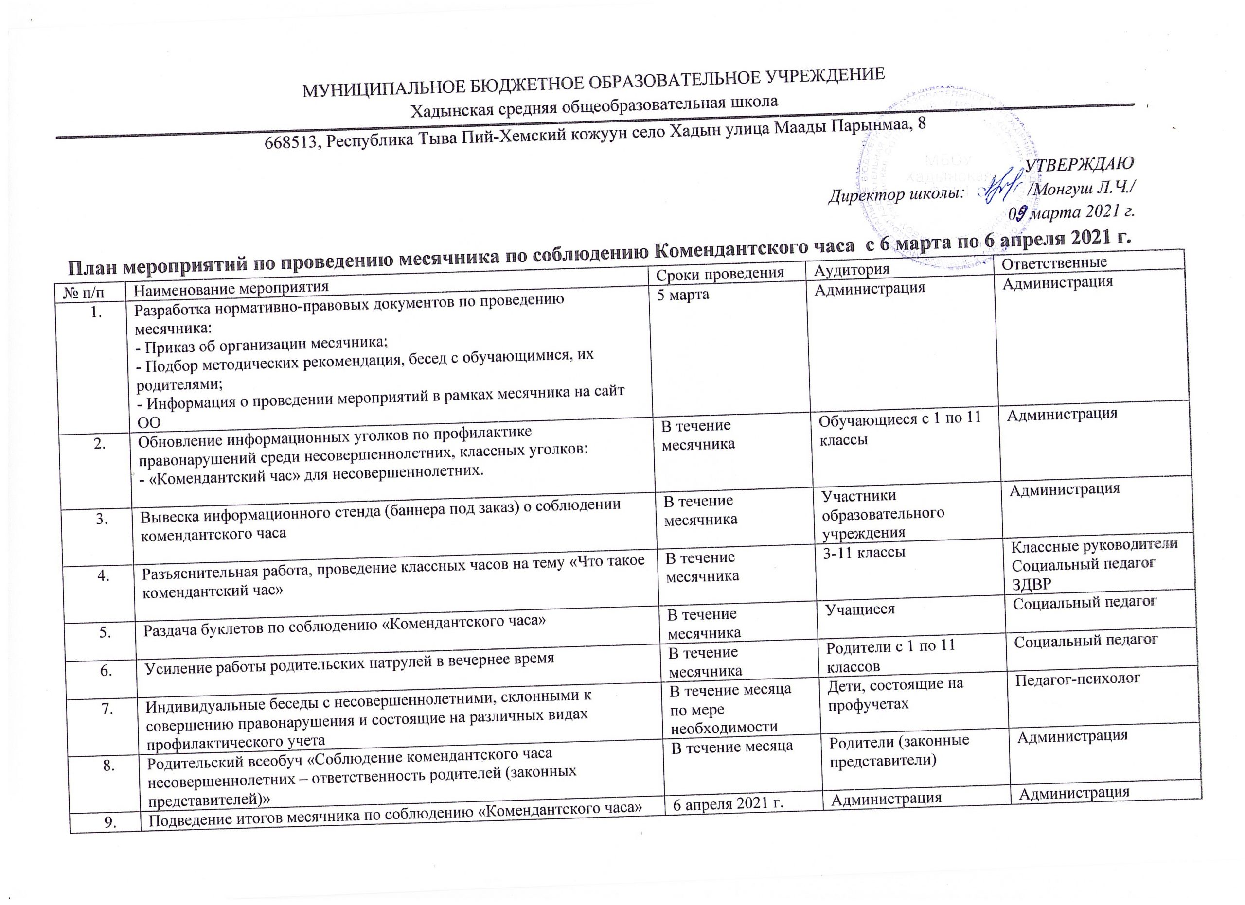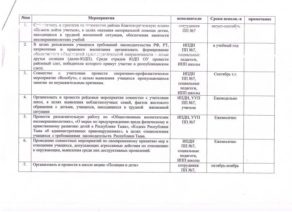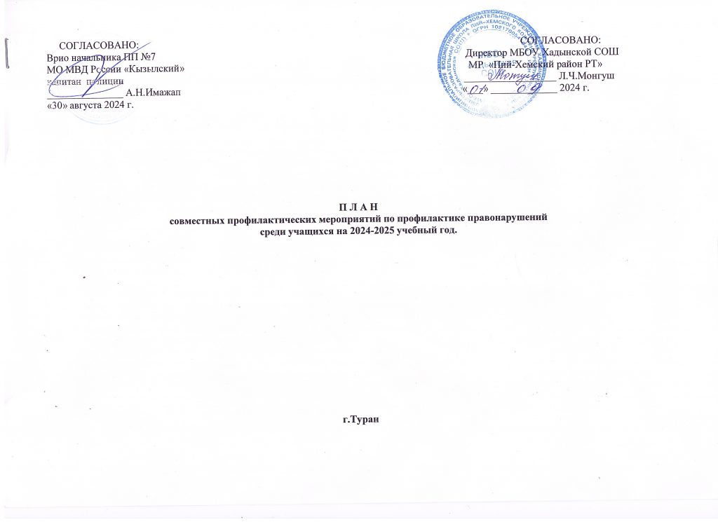 План совместных профилактических мероприятий по профилактике правонарушений среди учащихся на 2024-2025 учебный год
