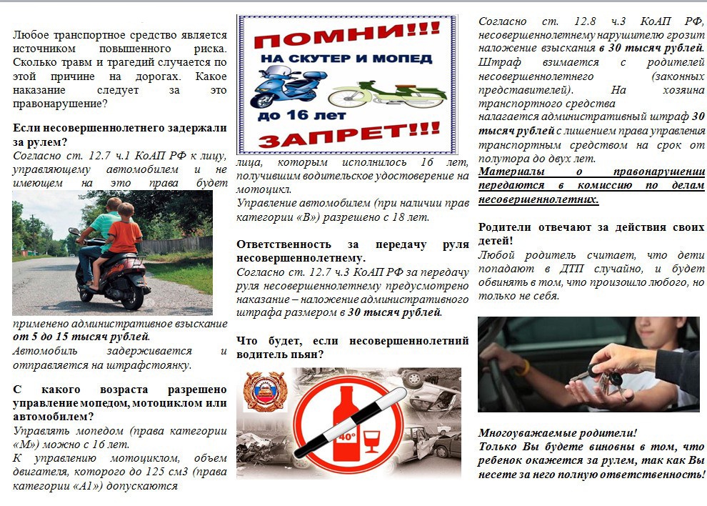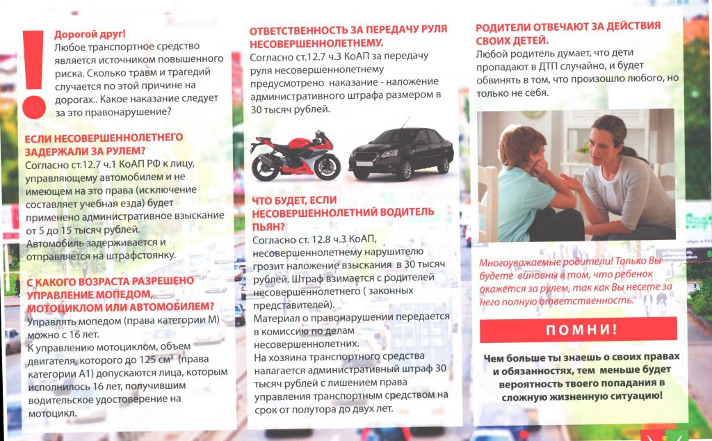 • Если передать руль несовершеннолетнему, штраф владельцу машины — 30 000 рублей