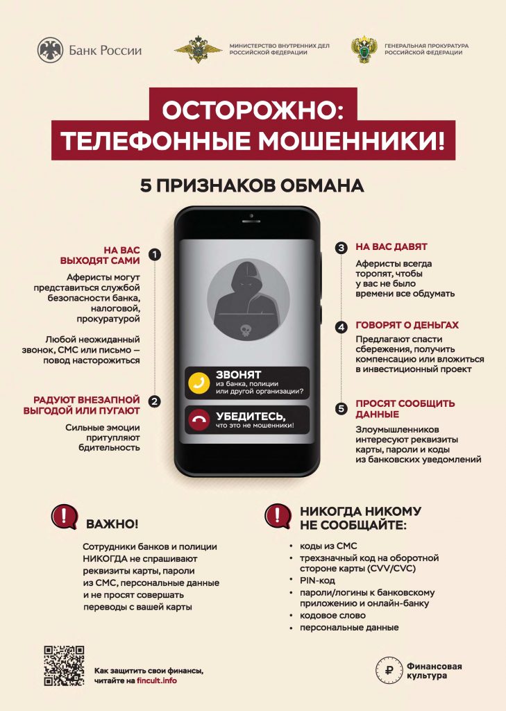 – остерегаться «телефонных» мошенников, которые пытаются ввести вас в заблуждение;
