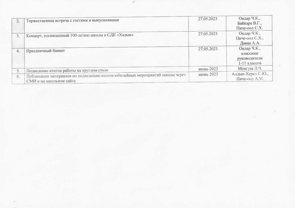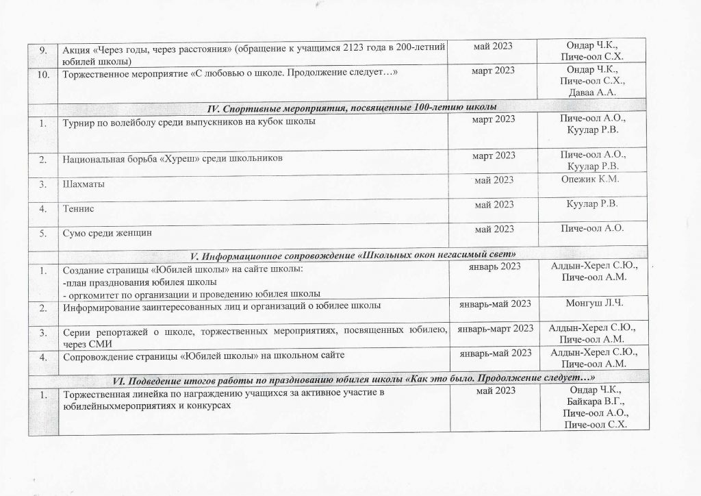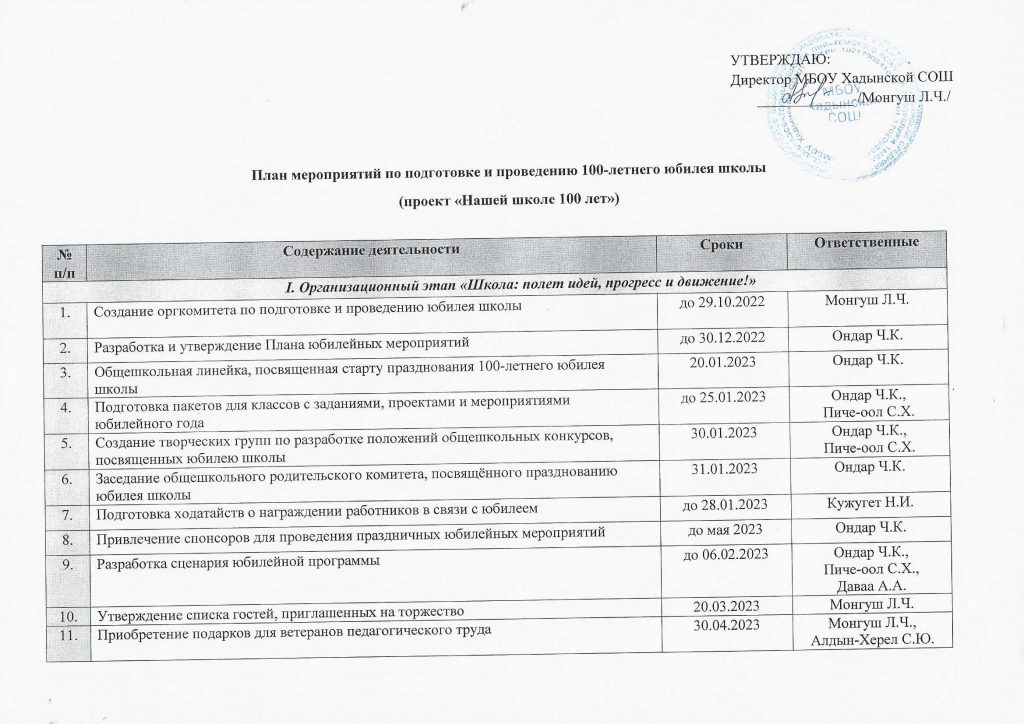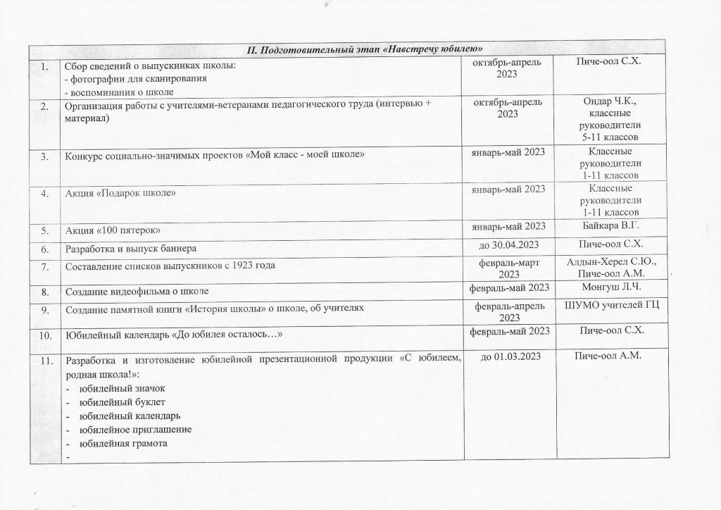 План мероприятий по подготовке и проведению 100-летнего юбилея школы