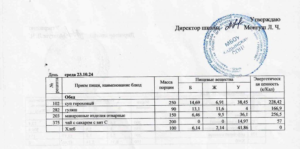 • Утвержденное меню на 2024-2025 уч. год