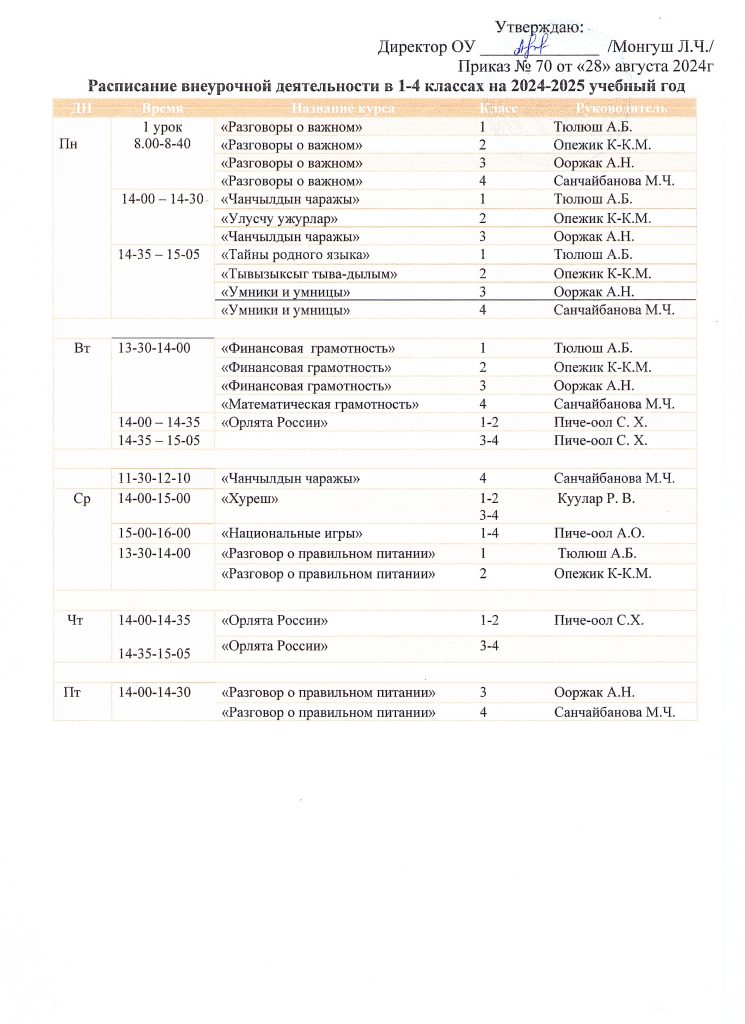 Расписание внеурочной деятельности